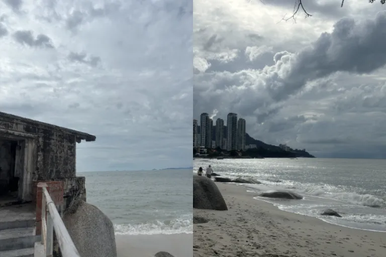 这里的海滩矗立着一座具有历史感的旧堡垒,据说是二战留下来的遗迹,成为当地超热门的拍照背景。想找到它并不难,它就藏在海珠屿与大伯公庙的后面。