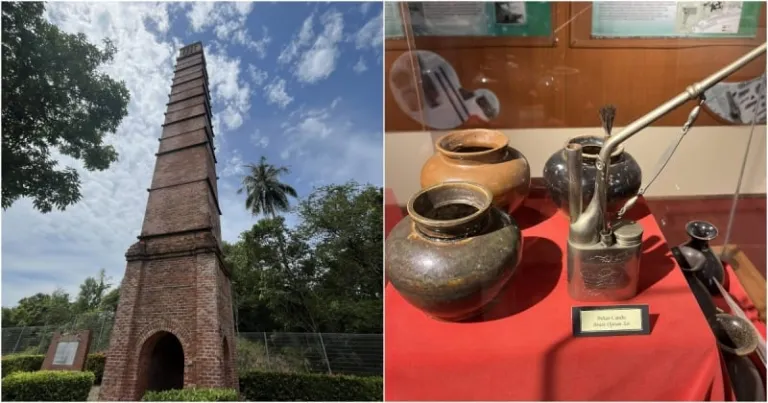 当天第一站是烟囱博物馆(Chimney Museum)。这里展示了纳闽从 1847 年到 1911 年的煤矿开采史和 Tanjung Kubong 的历史。入场免费,标志性的烟囱塔就矗立在博物馆旁。但读完介绍,我才发现这座塔并非真正的烟囱。它究竟是地标、钟楼,还是灯塔,至今仍是个谜。