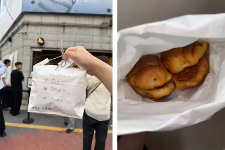 这就是韩国超人气的盐面包,拿到手时面包是新鲜出炉的,吃起来超级香咸美味,只要吃过一次你就明白它为什么这么有名了!虽然排队人龙可能会很长,但他们的效率超高,从点餐到取餐都不会等太久,完全可以放心加入排队队伍!