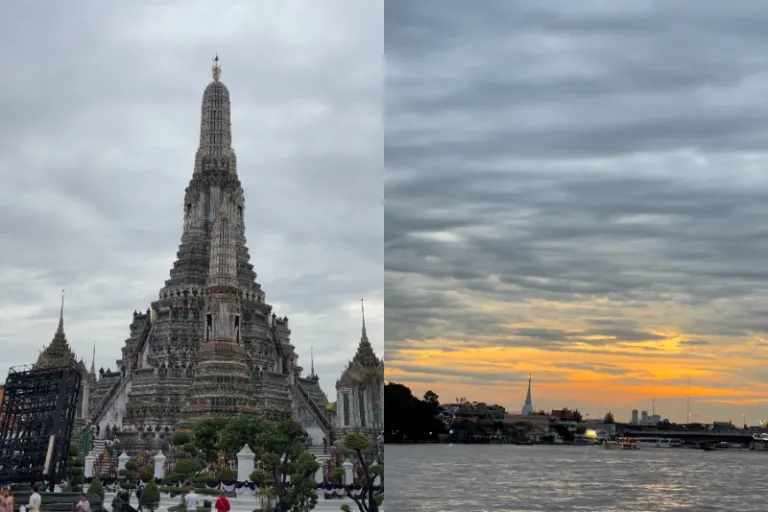 高高矗立的郑王庙(Wat Arun)显得气势磅礴,我们特意安排在傍晚日落时分前往,非常幸运地遇到了绝美日落,高耸的佛塔在夕阳的金色映照下格外壮观,是湄南河边拍日落大片的首选地点! 如果你喜欢拍照,可以在郑王庙附近租借一套泰式传统服装,在日落时分以佛塔为背景,拍出充满异域风情的绝美大片,体验感满分!