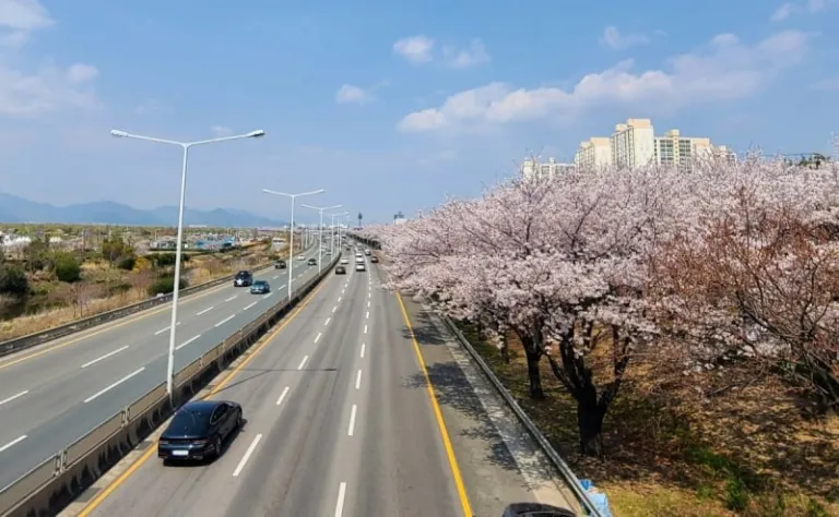 釜山的樱花季带着海风的气息。像 温泉川和迎月路这样的地方,可以一边欣赏柔美的樱花,一边看到海景,是韩国少见的 海岸樱花景观。