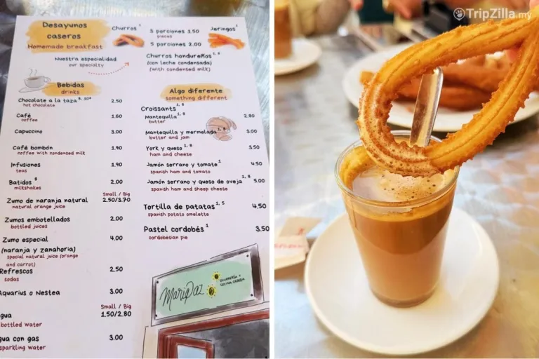 Kami memulakan pagi keesokan harinya dengan bersarapan di Corredera Square, di sebuah kafe kecil yang selesa bernama Desayunos Caseros. Saya mencuba churros dan jeringos dengan cara tradisional Sepanyol, iaitu mencelupnya ke dalam café con leche (kopi susu pekat manis). Pilihan peribadi saya? Sudah tentu churros! Klasik tetapi menarik.