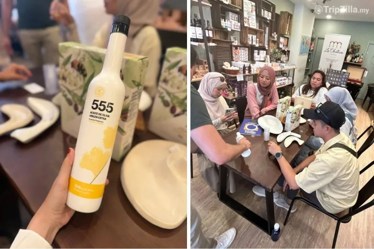 Sebelum menikmati hidangan, kami singgah di sebuah kedai Oleoteca untuk sesi merasa minyak zaitun. Saya belajar bahawa ada teknik khusus untuk menikmatinya dengan betul iaitu tuangkan sedikit minyak zaitun ke dalam gelas, kemudian gosok atau putar perlahan gelas itu dengan tangan untuk memanaskannya. Setelah itu, hirup aromanya dengan dalam sebelum meneguk sedikit. Haba daripada tangan membantu melepaskan aroma rempah dan buah yang kompleks, menjadikan pengalaman merasa itu terasa hampir seperti satu ritual. Kedai tersebut turut menjual minyak wangi, produk kosmetik, dan minyak zaitun tulen berkualiti tinggi pada harga yang berpatutan. Ia mengingatkan saya kepada sebutan dalam al-Quran tentang buah tin dan zaitun sebagai makanan yang diberkati (Surah At-Tin, ayat 1) — satu penghormatan kepada nilai spiritual dan khasiatnya yang luar biasa.