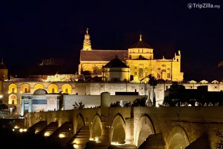 Apabila matahari mula terbenam, Mezquita-Catedral kelihatan bersinar di kejauhan, manakala Calahorra Tower berdiri megah di hujung satu lagi jambatan. Bagi saya, jambatan ini bukan sekadar laluan indah untuk berjalan kaki tetapi ia terasa seperti peralihan sebenar antara masa lalu dan masa kini, mengingatkan saya tentang peranan Córdoba sebagai titik pertemuan pelbagai tamadun. Tidak hairanlah ia menjadi antara tarikan utama di Córdoba, dan pastinya wajib dikunjungi oleh pengembara Muslim yang ingin menyelami sejarah dengan lebih dekat!