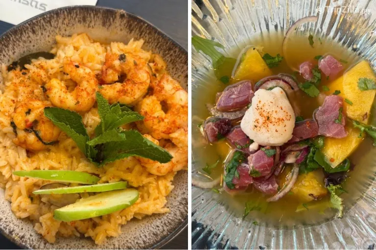 Dan jika anda ingin mencuba sesuatu yang berbeza, La Conchinchina Sushi Bar menawarkan gabungan kreatif masakan Jepun dan Asia Tenggara. Saya memilih curry gambón (udang), gyoza vegetarian, dan salmon poke bowl. Semuanya segar, ringan, dan menyelerakan. Kakitangan di sini juga sangat ramah serta sedia menyesuaikan bahan masakan mengikut keperluan diet pelanggan.