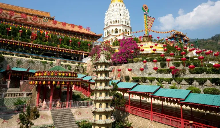 Located in the hills of Air Itam, Kek Lok Si is one of the largest and most impressive Chinese temple complexes in Southeast Asia. Rather than a single structure, it is a vast network of prayer halls, courtyards, pagodas and gardens that has been expanded over several decades. The scale of the complex reflects both religious devotion and the historical prosperity of Penang’s Chinese community.