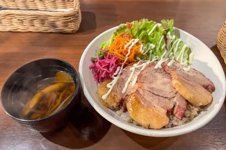 如今,在当地居民与店主的共同努力下,这片古老的街区正焕发出新的生命力。其中最令人惊喜的变迁莫过于“町家文库”咖啡馆(Café Machiya Bunko)。这座由旧书店改建而成的餐饮空间,保留了温馨而多元的装修风格,营造出一种极其安逸、如家般舒适的氛围。在等待午餐上桌的间隙,随手翻阅店内丰富的藏书,本身就是一种享受。我点了一份浓郁入味的姜汁猪肉饭,同伴们则选择了搭配多种沙拉的炸鸡拼盘。在书香与食香交织的空间里,时光仿佛慢了下来。