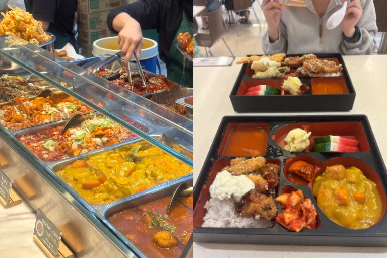 餐盒内除了两样主菜,还会附上三份韩式小菜、泡菜汤以及水果,整体分量与搭配都相当均衡,很适合想快速解决一餐又不想随便吃的时候。