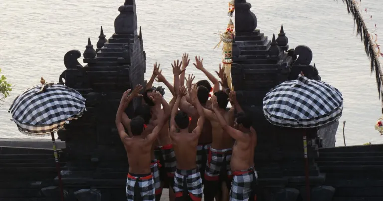The temple is known not only for its sweeping ocean views and cliffside setting but also for the spectacular Kecak Fire Dance, performed at sunset. This performance features rhythmic chanting, dramatic movements, and highlights from the Ramayana, creating an immersive cultural experience.
