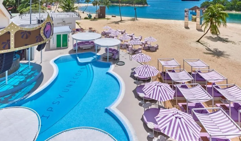 Tipsy Unicorn delivers a beach festival atmosphere at Siloso Beach on Sentosa Island. Spread across three levels, the venue features a pool, ocean-facing bar, DJ stage and VIP cabanas. The focus is on outdoor partying, pool dancing and tropical cocktails rather than traditional clubbing.