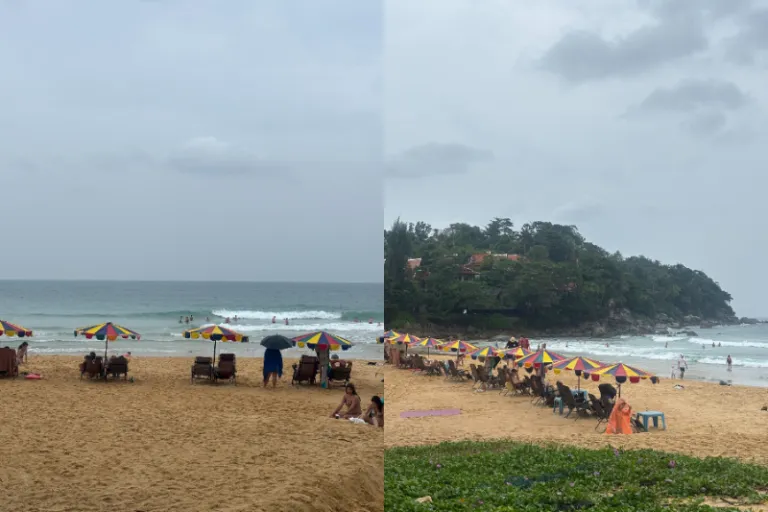 卡塔海边让人感觉非常放松,我发现游客们都非常“Chill”,静静地躺着享受或玩水。我们在这里感受到了真正悠闲的海岛度假氛围,是放空思绪的绝佳地点。如果像我们一样遇到小雨,不妨先买好雨衣或撑上雨伞,再回到海滩边,感受一下雨中海滩的独特气氛。